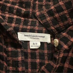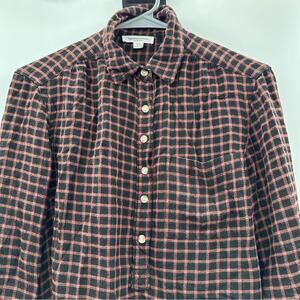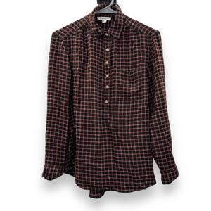 Beach Lunch Lounge Black & Coral Long Sleeve Half Button Down Shirt Size S