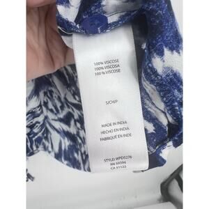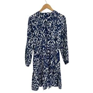 Beach Lunch Lounge Blue Black Abstract Print Long Sleeve Button Front Dress Snap