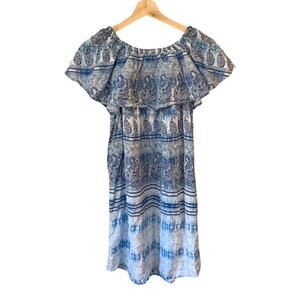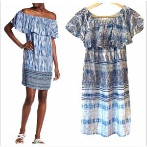 Beach Lunch Lounge Blue Evi Off Shoulder Shift Dress Beach Swim Coverup XS Extra Small