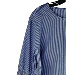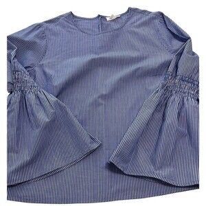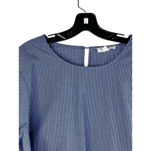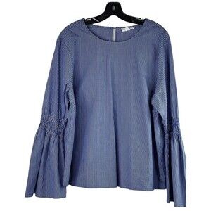 Beach Lunch Lounge Blue White Vertical Bell Sleeve Striped Lightweight Top XL