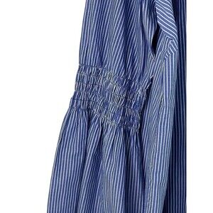 Beach Lunch Lounge Blue White Vertical Bell Sleeve Striped Lightweight Top XL100% Lightweight CottonPullover, Single Button BackRound NeckElastic Mid Sleeve with Bell SleeveSee measurements in photos
