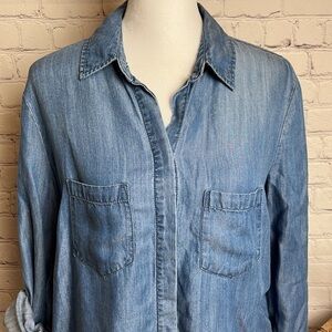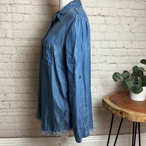 Beach Lunch Lounge Chambray Top with Raw Hem