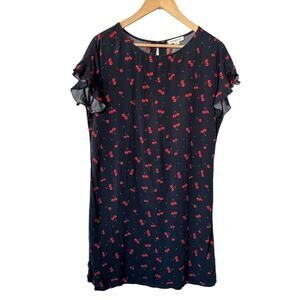 Beach Lunch Lounge Cherry Print Flutter Sleeve Dress Small