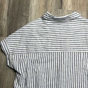 Beach Linch Lounge Collection Linen Blend Collared Striped shirt, size small. Blue/Chambray and White Stripes. Such a cute top. See pictures for measurements and fabric content.