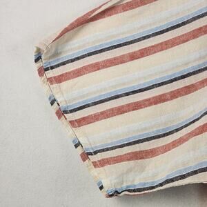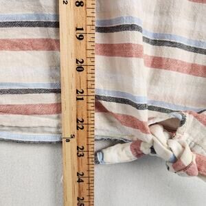 Beach Lunch Lounge Collection Top Women S/P Cream Multi Striped Tie Linen Cotton