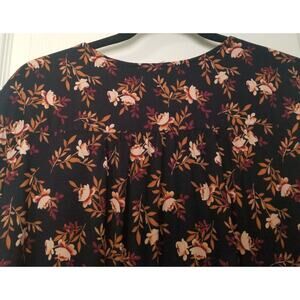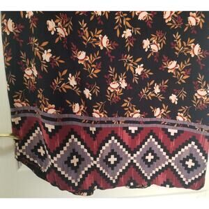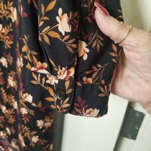 Beach Lunch Lounge Dress Black Floral Knee Length Boho Peasant Prairie Sz L