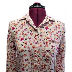 Beach Lunch Lounge Floral Button Down Shirt - Pink Orange Cream Brown Mulitcolor