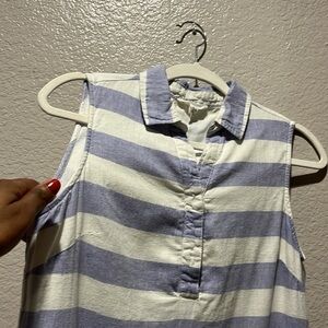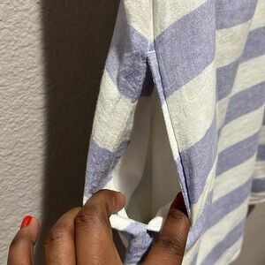 Beach Lunch Lounge Leandrina Blue Striped Linen Cotton Dress Pockets Size S/P