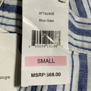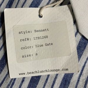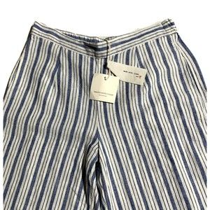 Beach Lunch Lounge Linen Blend Pants Womens Size S Blue Stripe Cropped Wide Leg