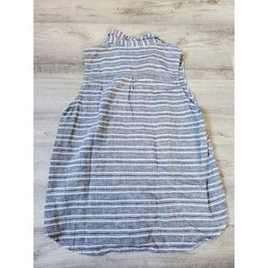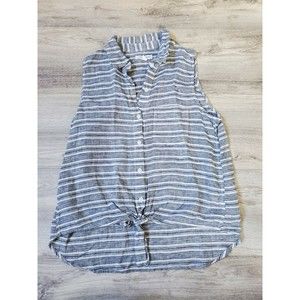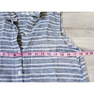 Beach Lunch Lounge Linen Tie Front Shirt Women's Size Small Blue White Striped