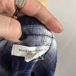 Beach Lunch Lounge Navy Plaid Sleeveless Button Tank Top Blouse Small Casual