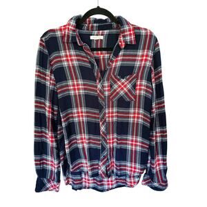 Beach Lunch Lounge Plaid Flannel Button up Red Blue Small Fall Cozy Layer Soft