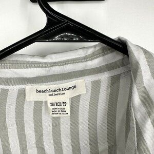 Beach Lunch Lounge Sage Green Stripe Blouse Size XS Tie Front
