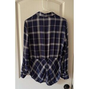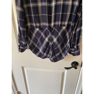 Beach Lunch Lounge Shirt Womens Small Button Front Blue Plaid Top