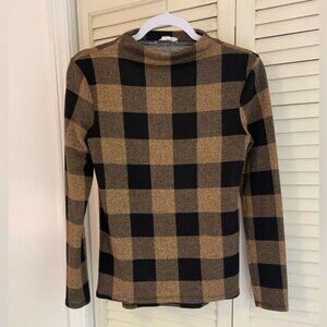 Beach Lunch Lounge Size XS Plaid Mock Neck Long Sleeve Fleecy Top