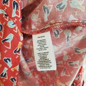 Beach Lunch Lounge Sleeveless Blouse Button Up Tied Waist Bird Pattern Womens XS