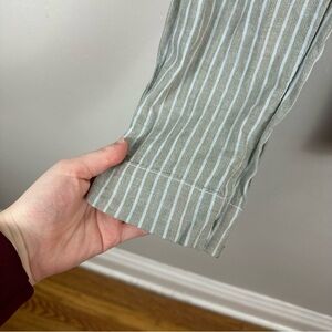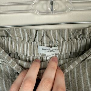 Excellent condition striped linen blend pants. The color is kind of halfway between a gray/ tan color. Tie waist. Elastic waist.
