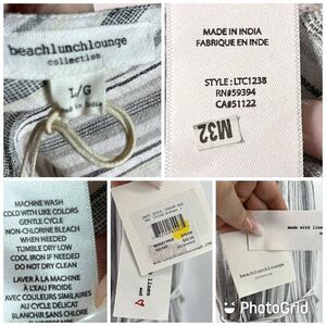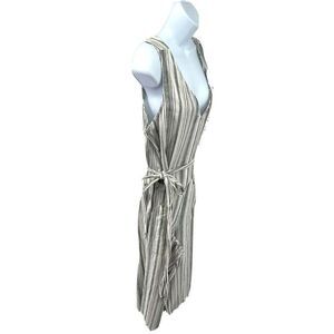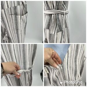 New Beach Lunch Lounge Size Large Striped Linen Wide Leg Cropped Jumper Suit Jumper. Black, Gray, tan, and ivory colors. New with tags. Measurements in photos. No rips, holes, or stains. Comes from smoke free environment.