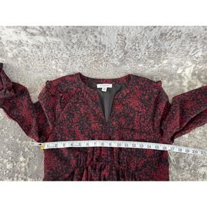Beach Lunch Lounge Sz XS Abstract V Neck Semi Sheer Knee Length Dress Red Black