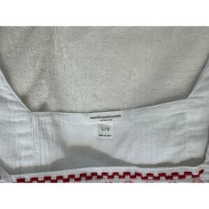 Beach Lunch Lounge White Embroidered Top Cap Sleeve Boho Blouse L Peasant