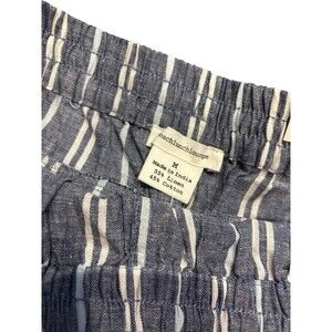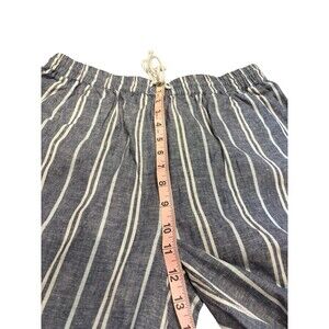 Beach Lunch Lounge Women M Blue White Stripe Linen Blend PullOn Capri Pant Boho