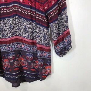 Beach Lunch Lounge Women's Maroon And Navy Floral Boho Peasant Top Size Large