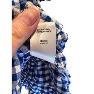 Beach Lunch Lounge Women's Medium Blue Gingham Blouse 3/4 Sleeve ruffle