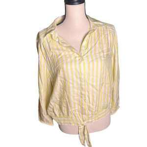 This beautiful M & M beach top is perfect for your next trip to the beach. The yellow striped top has a button-up closure and long sleeves with casual sleeves. The tie waist adds a cute and stylish touch to the cropped style. The top is made of Ryon /Lyocell material with a rayon fabric type and features a stretch waistband for added comfort.