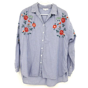 Beach Lunch Lounge size large 100% cotton button up striped embroidered shirt