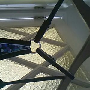 Purple/black/blue/white tankini top. Racer back. Nylon, spandex and polyester