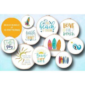 Beach Ocean Summer Funny Humor Sun Counted Cross Stitch Patterns Set of 10