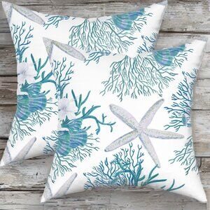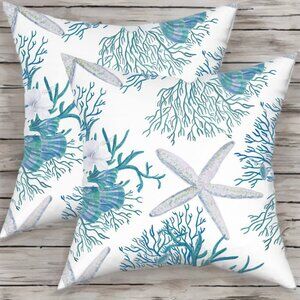 Beach Pillow Covers Soft Cases Set 18" Cottage Decor Coastal Nautical Decoration