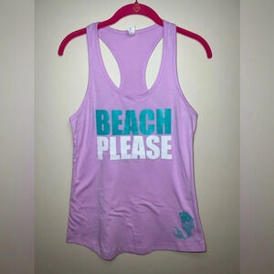 Beach Please Racerback Tank in Size Medium. Perfect for your end of summer Beach getaway. Adorned with a sweet mermaid at the hem.