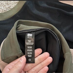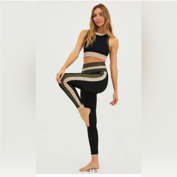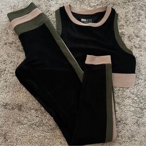 Chic black sport top with olive accents. Ideal for active days. Both top and bottoms. Worn a handful of times.