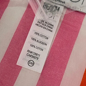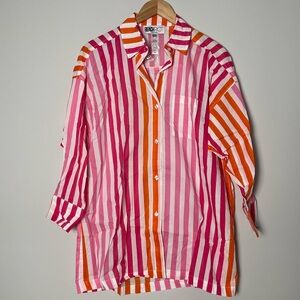 The Alexa Top is our lightweight button-down, collared cover-up featured in pink, orange and white stripes. Throw it on over your favorite poolside look or with a pair of denim shorts. This top is so versatile and will be the perfect addition to your wardrobe this season.