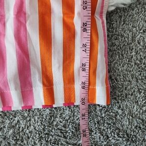 The Alexa Top is our lightweight button-down, collared cover-up featured in pink, orange and white stripes. Throw it on over your favorite poolside look or with a pair of denim shorts. This top is so versatile and will be the perfect addition to your wardrobe this season.