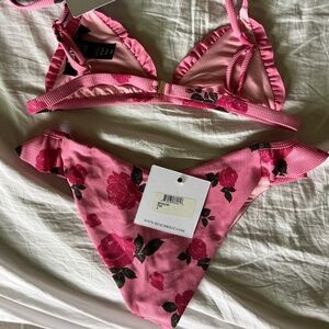 Piro XS top & S bottom — pink with roses and ruffles on both top & bottom.