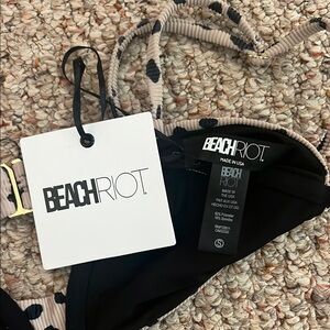 NWT Beach Riot bikini. Super cute swimsuit in perfect condition. Tan with black spots. Top is a small. Bottoms are a medium but fit a small.