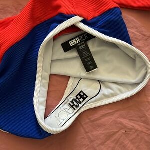 Your favorite Beach Riot Eva Top featuring adjustable straps in red, white & blue color blocking. Pair this bikini top with the matching Beach Riot Emmy Bottom to make it set.