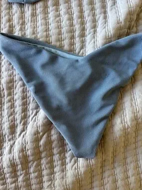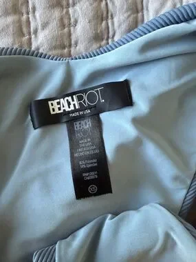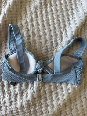 Beach Riot bikini in size xs. Dusty blue rib material with knot in the top. Cups are lightly padded. All known snags shown. Smoke free home. Lots of beach riot in closet.