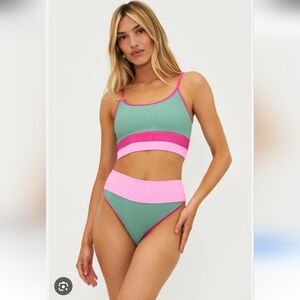 nwt, beach riot emmy bikini bottoms in sage bloom colorblock!