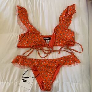 The Chloe bottom is floral printed with ruffle details and cheeky fit. Originally $70.
