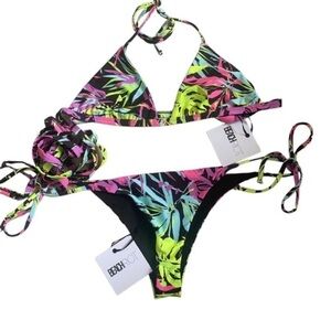 NEW Bikini Set Beach Riot Winnie Triangle Top & Soleii Bottom in Neon Palms