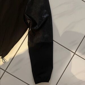 Stylish black hooded jacket. Lightweight and versatile. Perfect for layering.