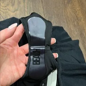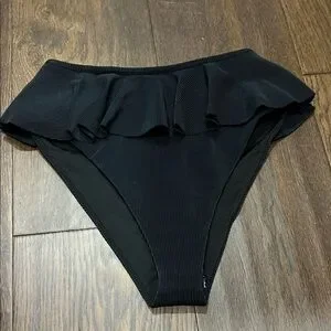 Elegant black bikini bottom with playful ruffle detail. Ideal for beach outings. New with tags