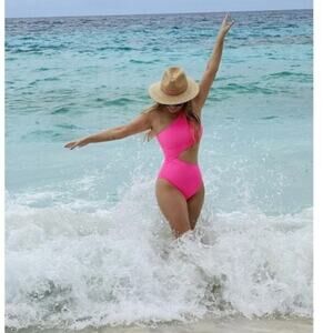 Beach Riot Celine One Shoulder Ribbed Swimsuit in Neon Pink - Size Large, worn once and hand washed / laid flat to dry!