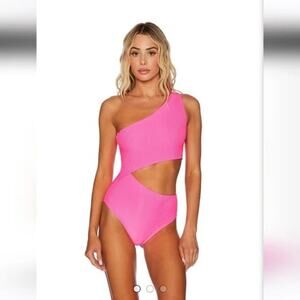Beach Riot Celine One Shoulder Ribbed Swimsuit Neon Pink Size Large