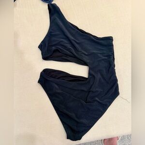 One shoulder, one piece with cut out. Some pilling on the butt area.