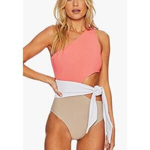 Beach Riot Coral Colorblocked Carlie One Piece Swim Suit S