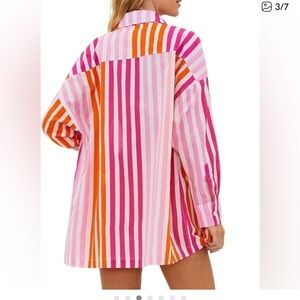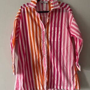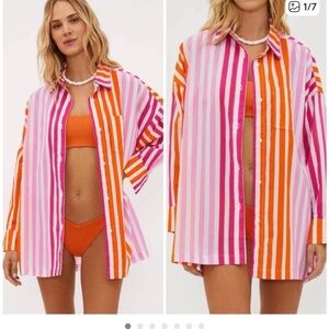 NWT Beach Riot orange and pink striped oversized shirt cover up. Size S/M